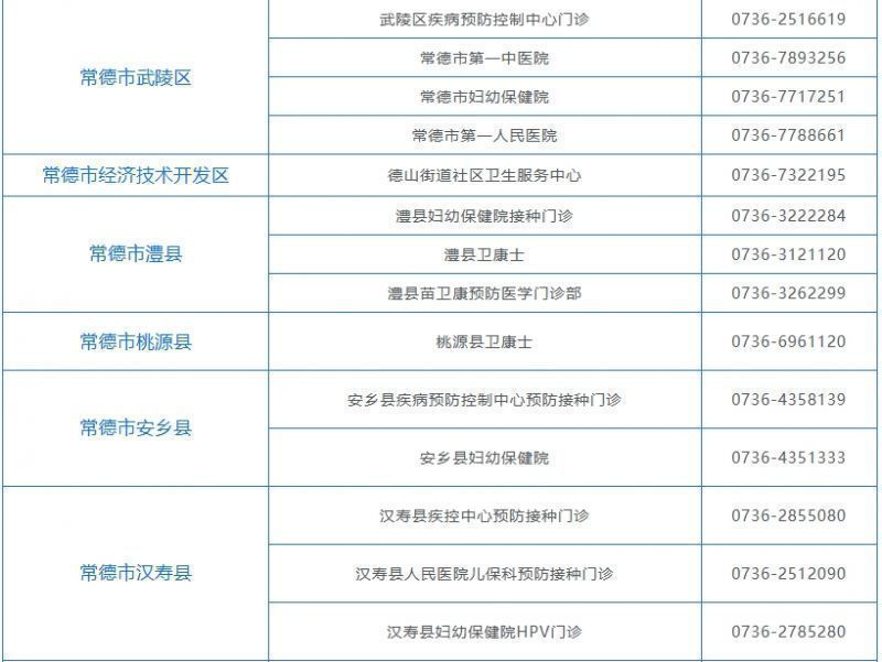 接种点:湖南省共189个接种,常德14个