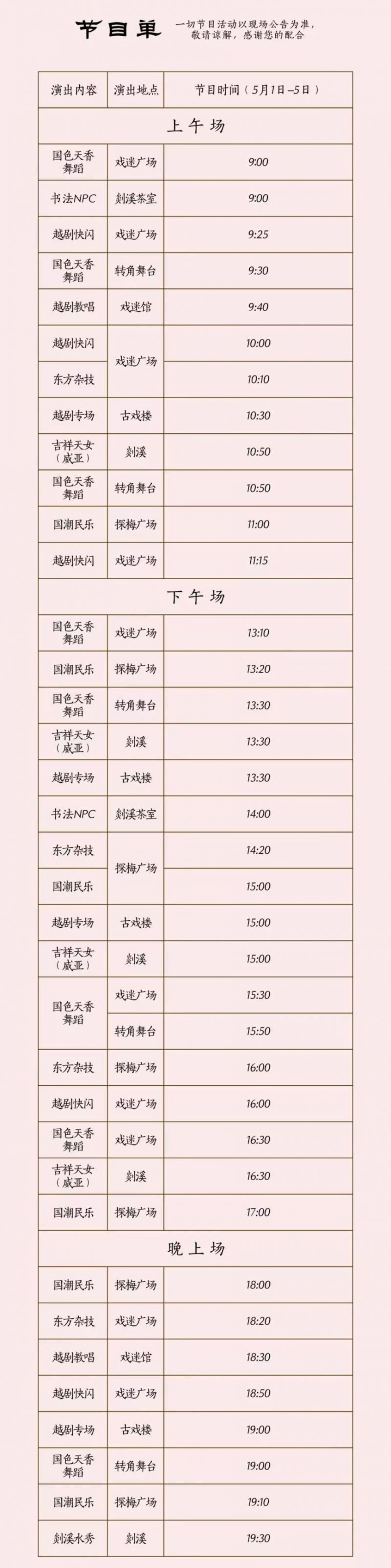 2025年五一假期绍兴越剧小镇好玩活动时间表如下: