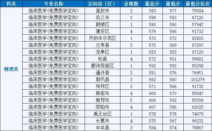 临床医学(免费医学定向)共录取50人。物理类录取50人,最高分607分,最低分560分。