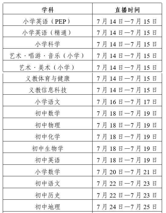培训课程直播时间为上午9:00开始,下午14:00开始。每天具体结束时间以各学科实际课程为准。各学科具体时间安排如下: