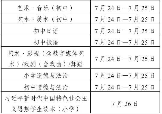 习近平新时代中国特色社会主义思想学生读本(小学)、小学道德与法治、小学语文、初中道德与法治、初中语文、初中历史;小学数学、小学英语(PEP、精通)、小学科学、艺术·唱游·音乐(小学)、艺术·美术(小学);初中数学、初中英语、初中物理、初中化学、初中生物学、初中地理、初中日语、初中俄语、艺术·音乐(初中)、艺术·美术(初中);艺术·戏剧(含戏曲)、艺术·舞蹈、艺术·影视(含数字媒体艺术);义教体育与健康、义教信息科技学科。