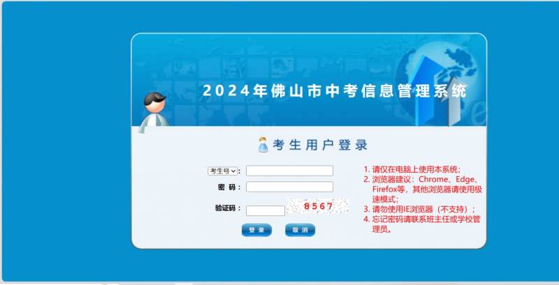 电脑端网站:https://exam.edu.foshan.gov.cn/iexamfs/KsLoginAction.action