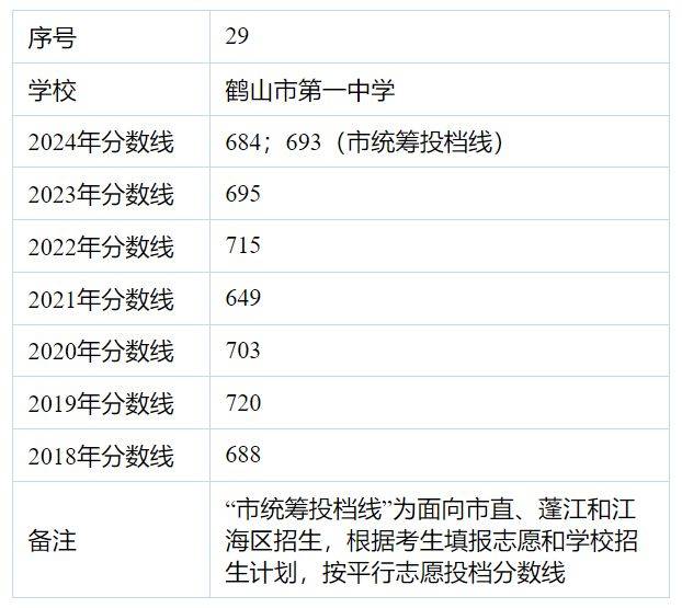 备注:“市统筹投档线”为面向市直、蓬江和江海区招生,根据考生填报志愿和学校招生计划,按平行志愿投档分数线。