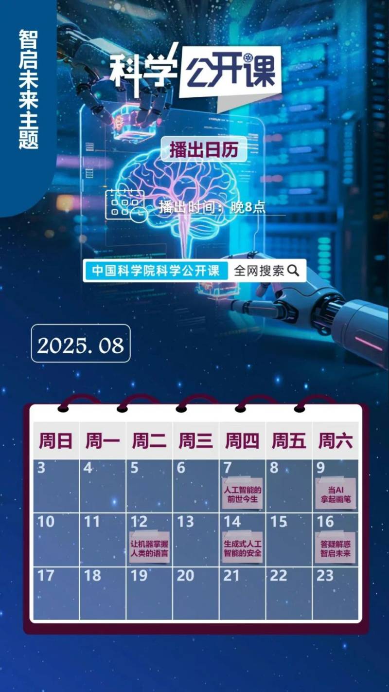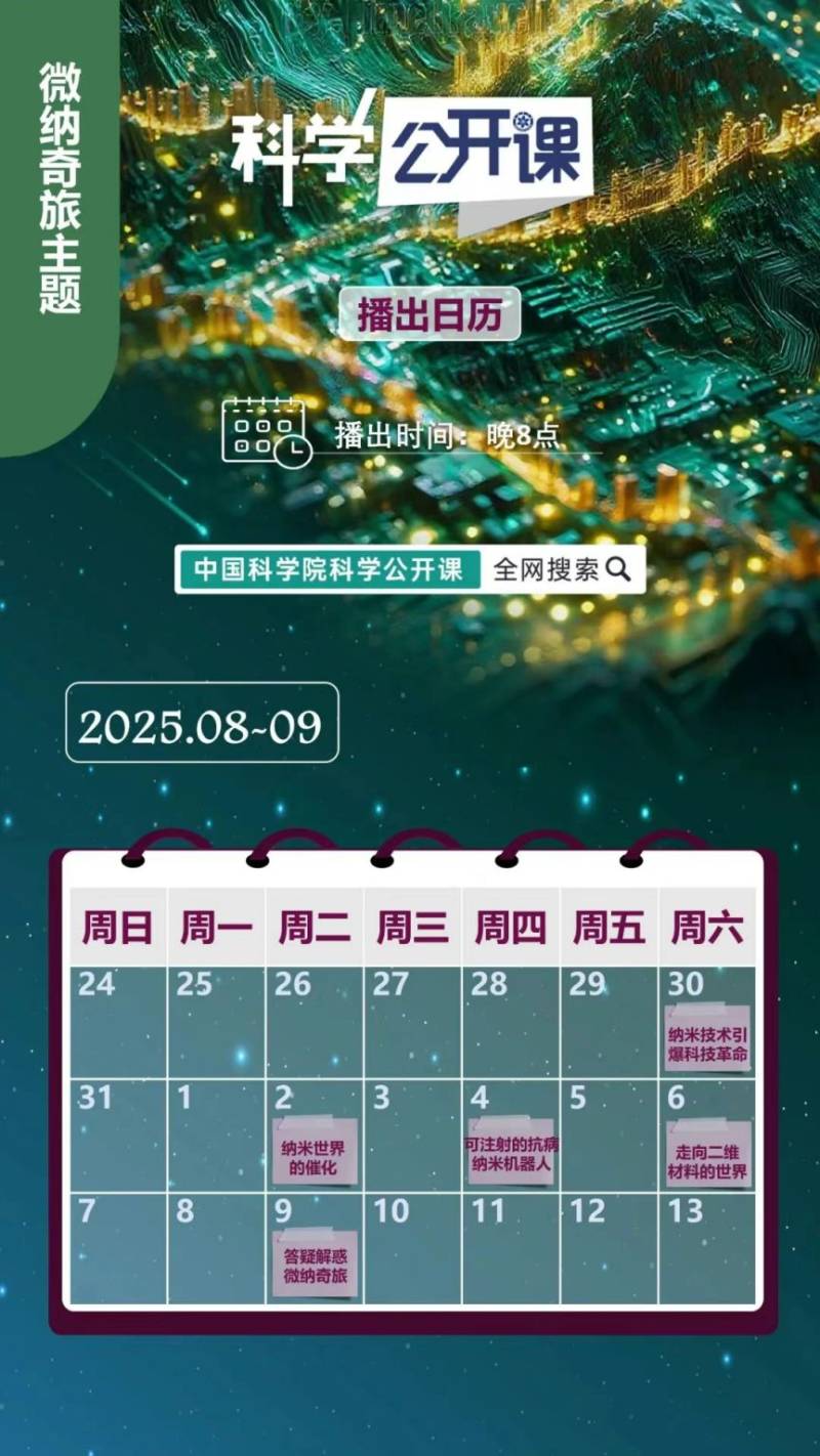 中国科学院学部工作局与教育部基础教育司为青少年联合打造的科学教育系列课程《科学公开课》(第七季),课程将于2025年7月15日起每周二、四、六晚8点播出。