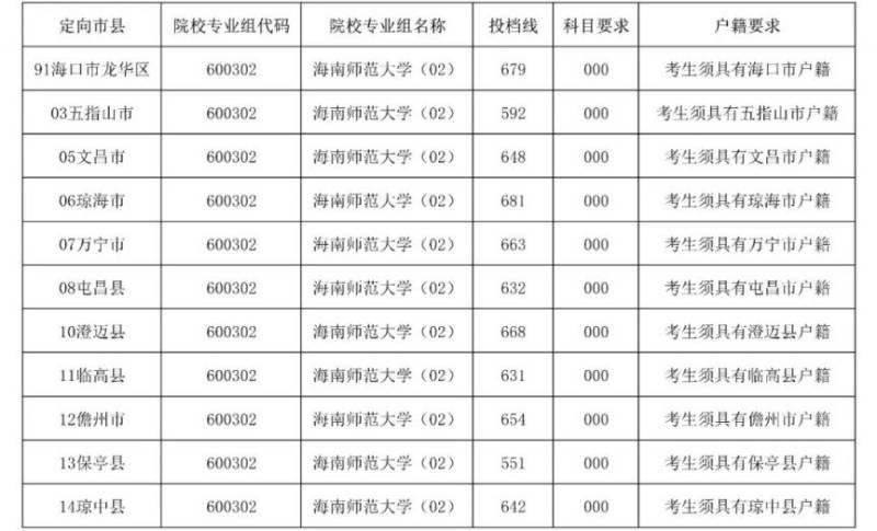 2025海南师范大学小学乡村教师定向公培生投档分数线
