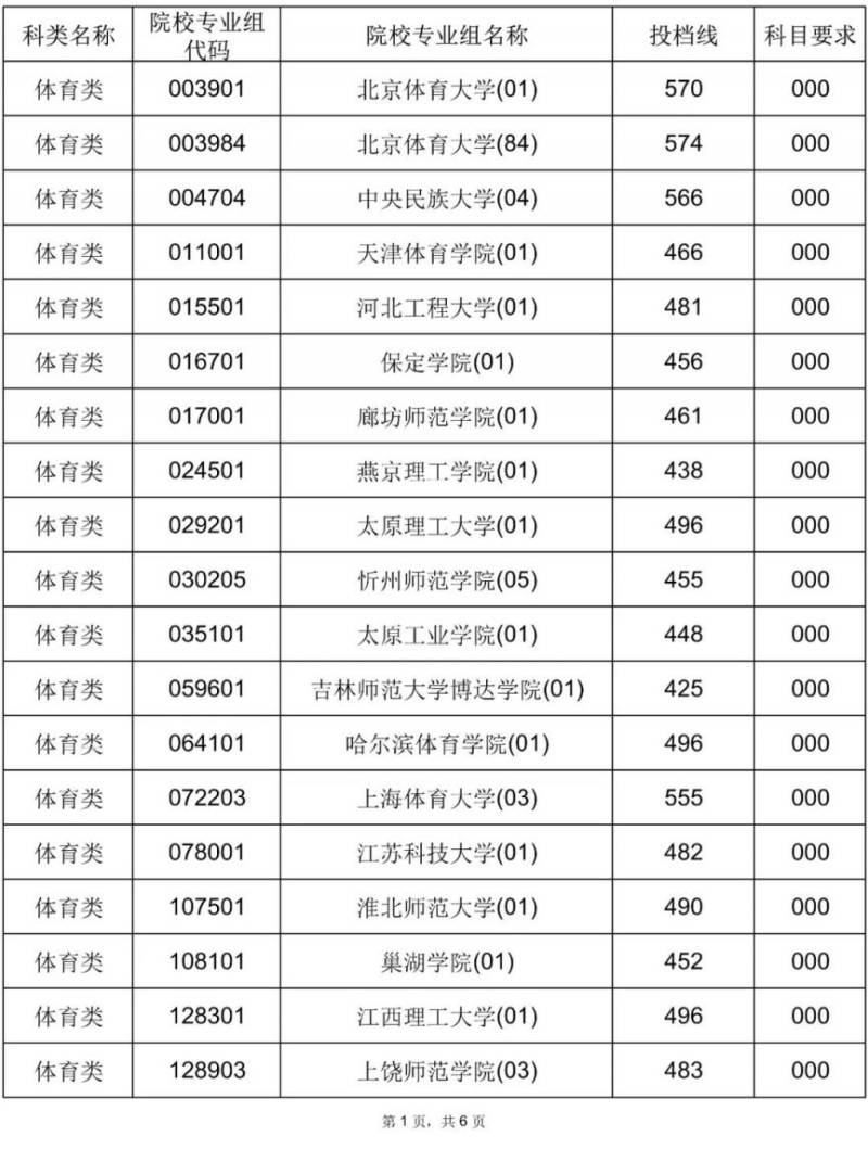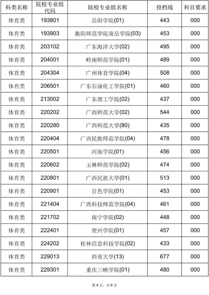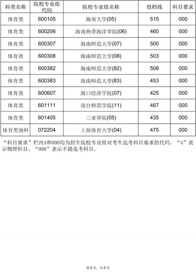 2025年海南省普通高校招生录取本科提前批体育类(含预科)平行志愿院校专业组投档分数线