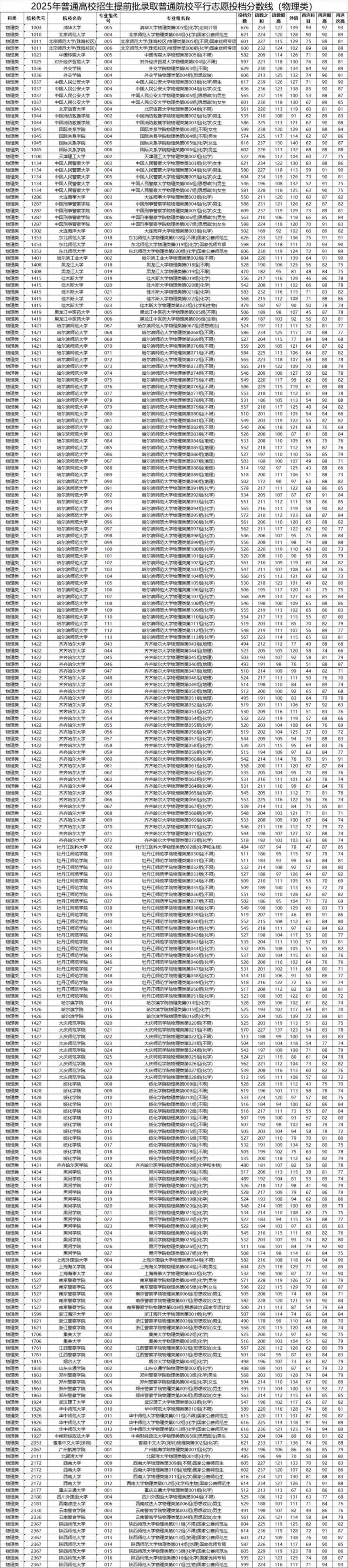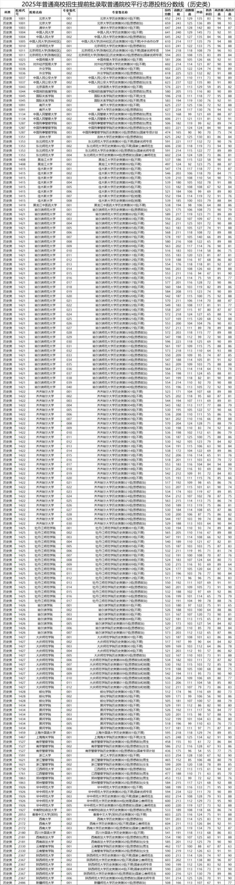 2025年普通高校招生提前批录取普通院校投档分数线现予公布