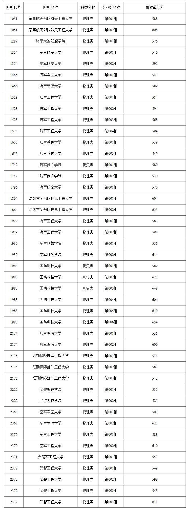 黑龙江省2025年普通高校招生军队院校录取最低分数线