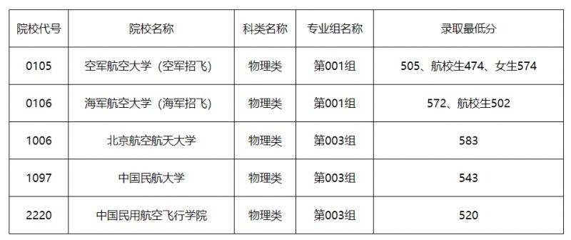 黑龙江省2025年普通高校招收飞行学员院校录取最低分数线