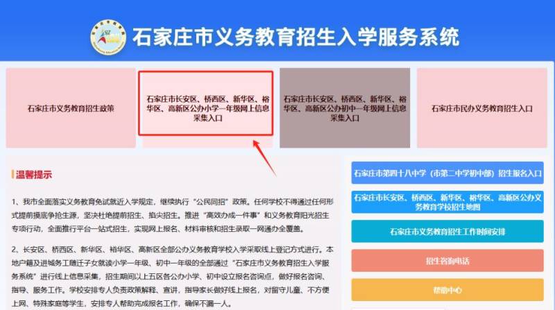 石家庄市义务教育招生入学服务系统注册登录指南及网址
