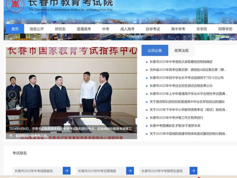 2025年长春中考征集志愿入口为长春市教育考试院官方网站(https://zkbm.cceea.com.cn/)考生需使用报名序号及初始密码(身份证后六位)登录填报。