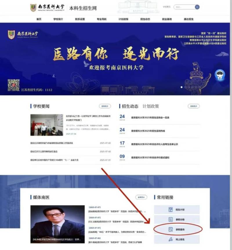 登陆我校本科生招生网http://zs.njmu.edu.cn/ ,