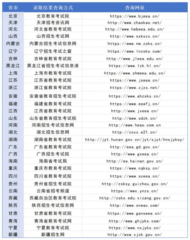 考生可在自己所在地区的省(市、自治区)教育考试院(招办)网站查询自己的录取结果。