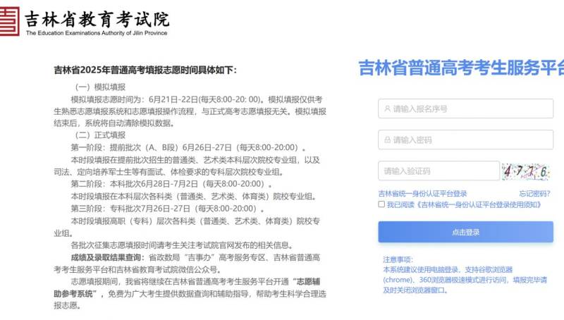 2025吉林省高考专科志愿填报入口:吉林省普通高考考生服务平台