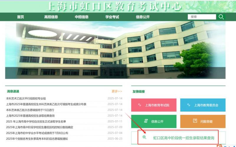 第一步:点击上方链接进入上海市虹口区教育考试中心官网