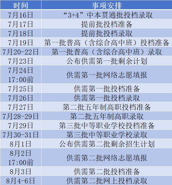 中招投档根据考生志愿和分数择优录取,并按福州阳光中招网公布的日程安排进行,每一所学校的录取最低分数线待该校完成招生计划时方能确认。届时,市中招办将以简报的方式在福州阳光中招网上(网址:https://jyj.fuzhou.gov.cn/zwgk/cswz/fzygzz/)公布各校的录取分数线。各批次投档时间如下: