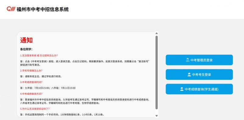 ①登录福州市中考中招信息系统(网址:https://fzszzb.fzedu.gov.cn:7243/iexam-fuzhou-web/)