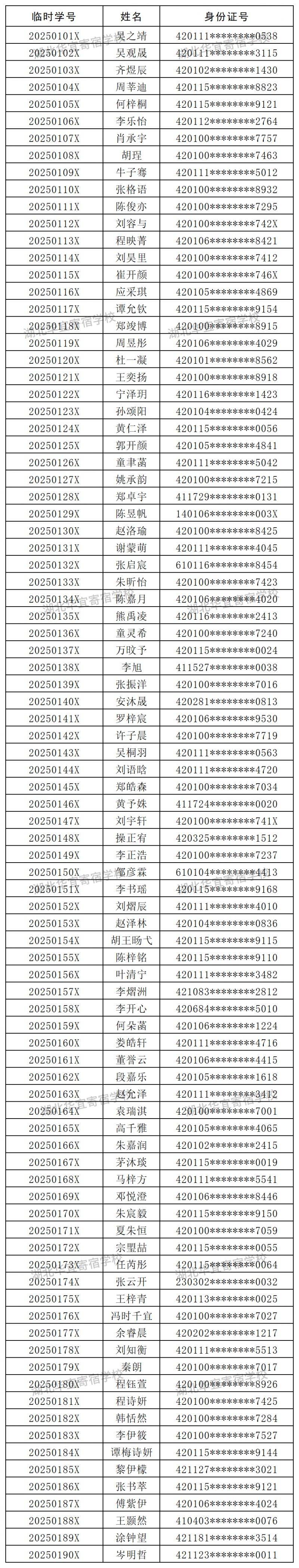 湖北华宜寄宿学校2025年幼升小录取名单: