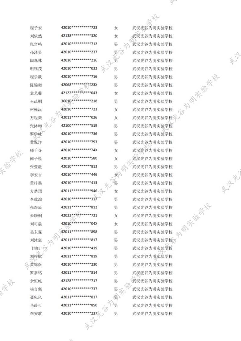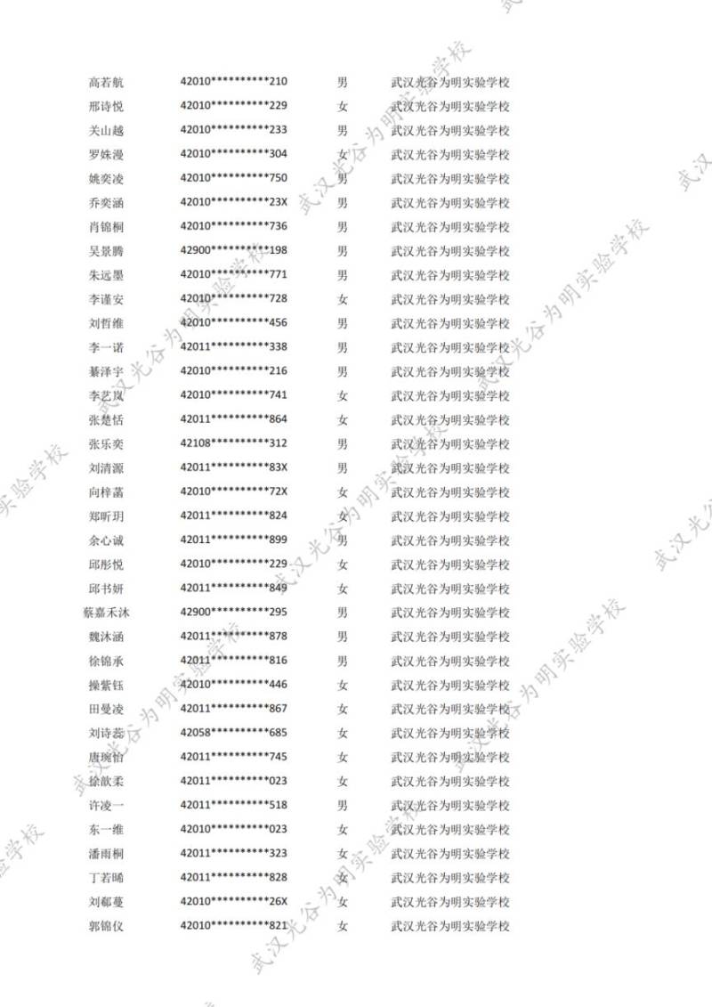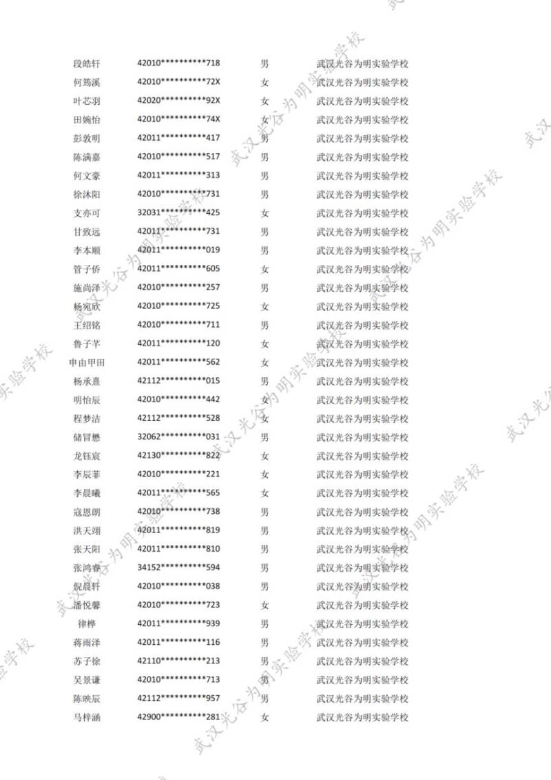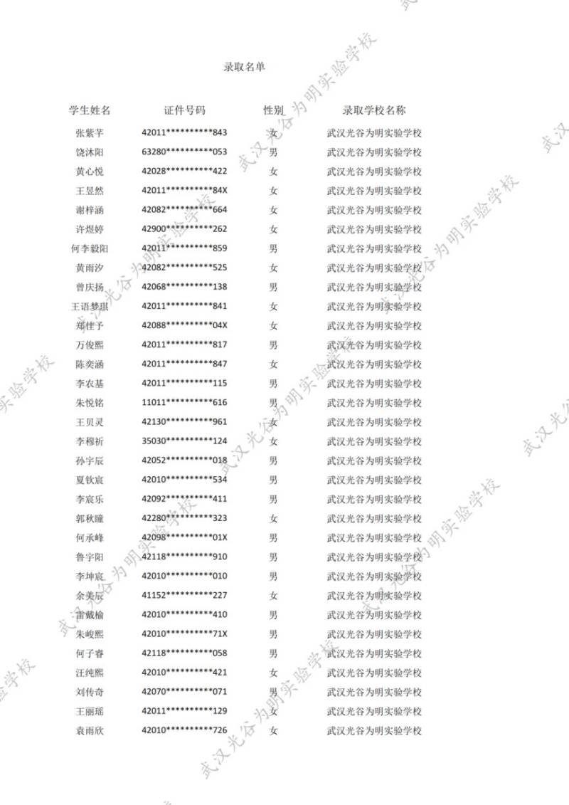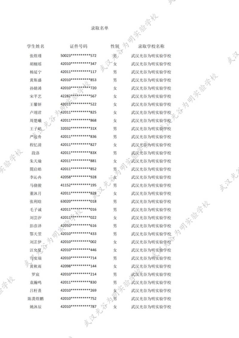 2025武汉光谷为明实验学校摇号录取名单(小学+初中)