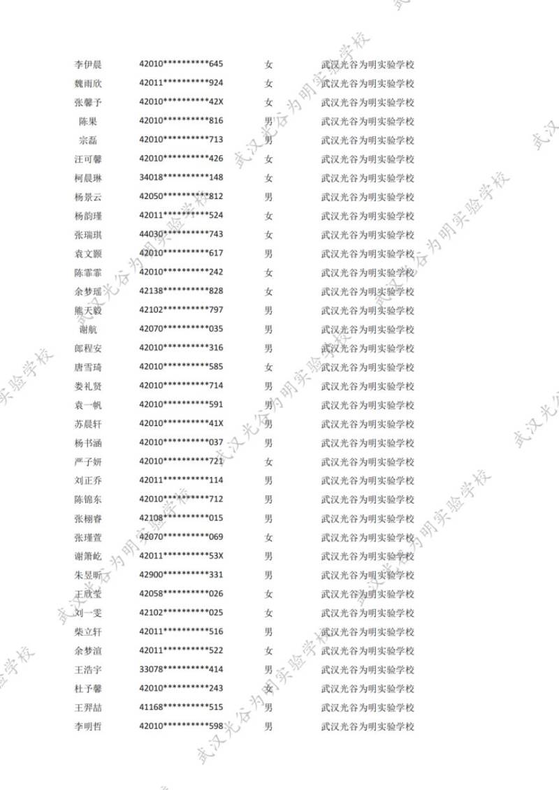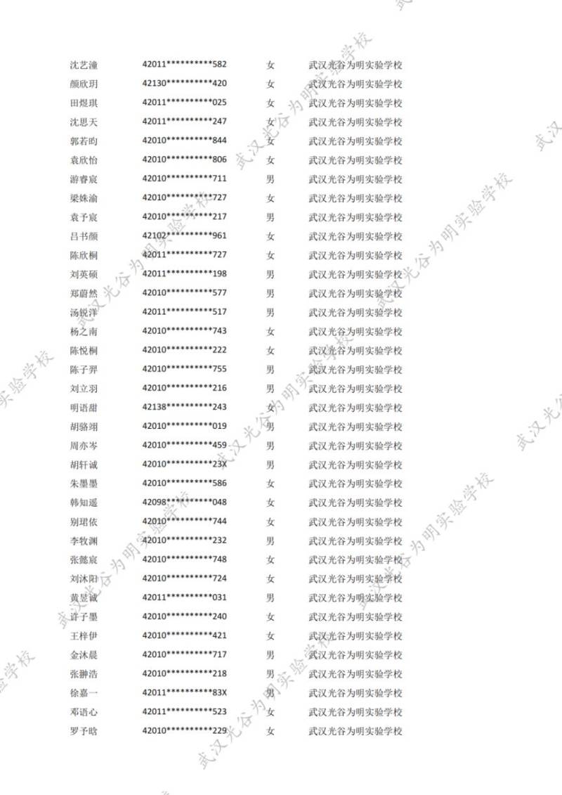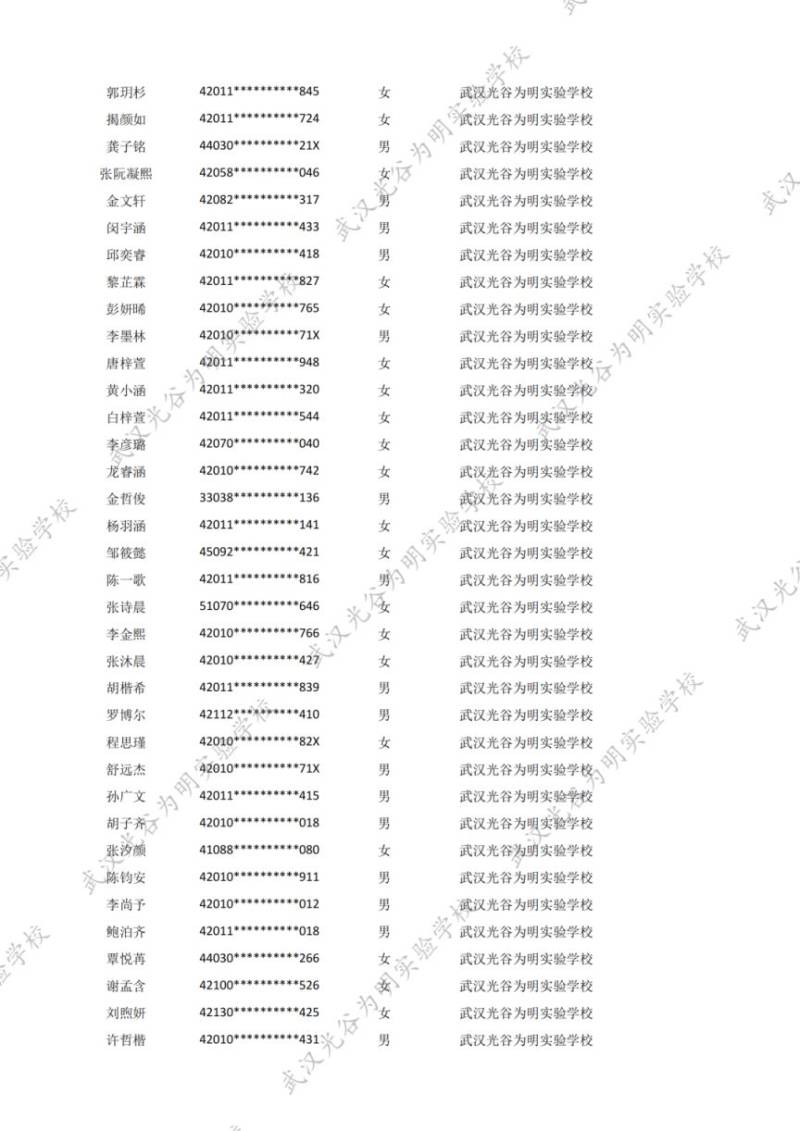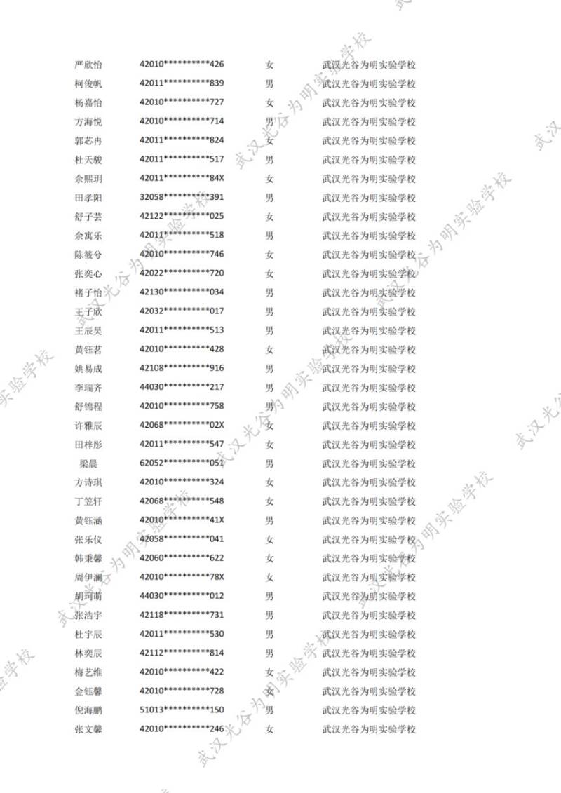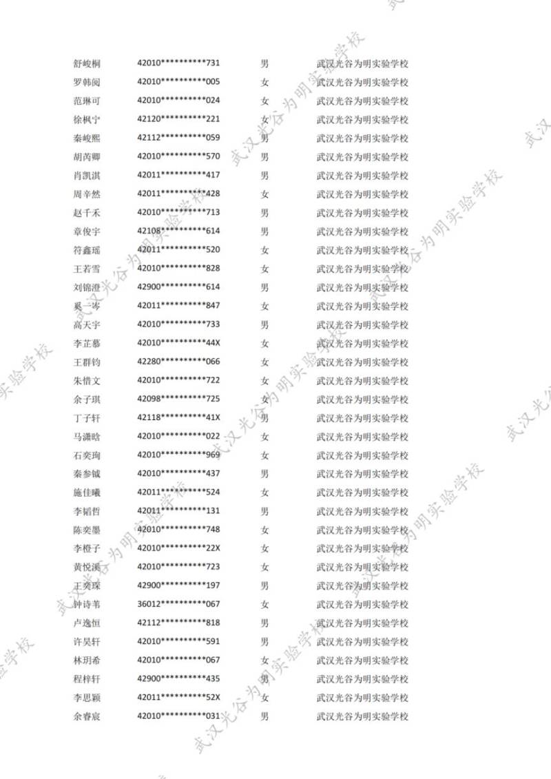 2025武汉光谷为明实验学校摇号录取名单(小学+初中)