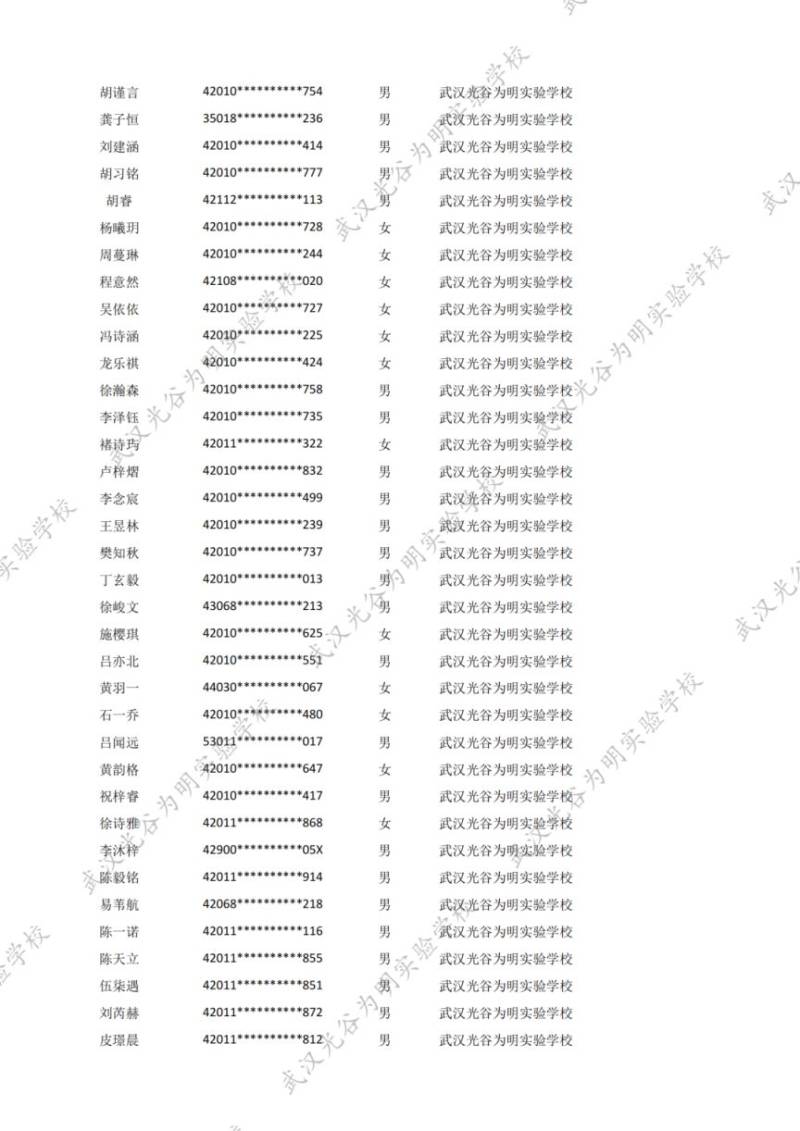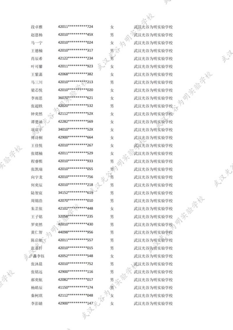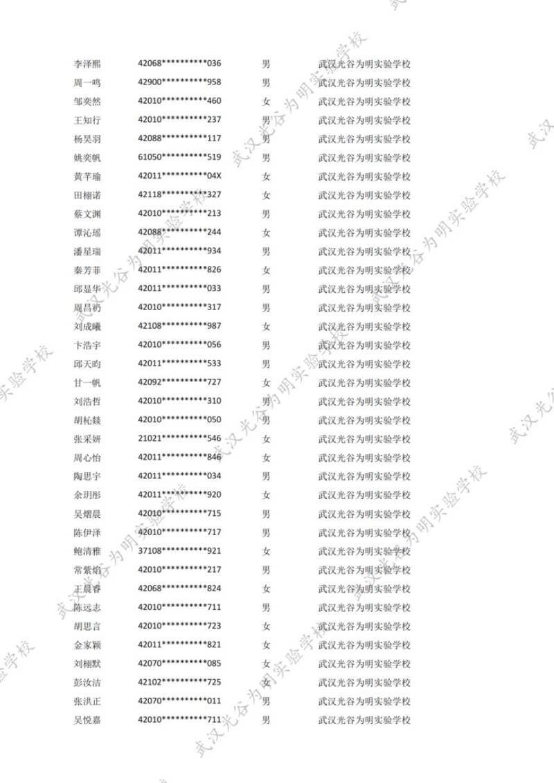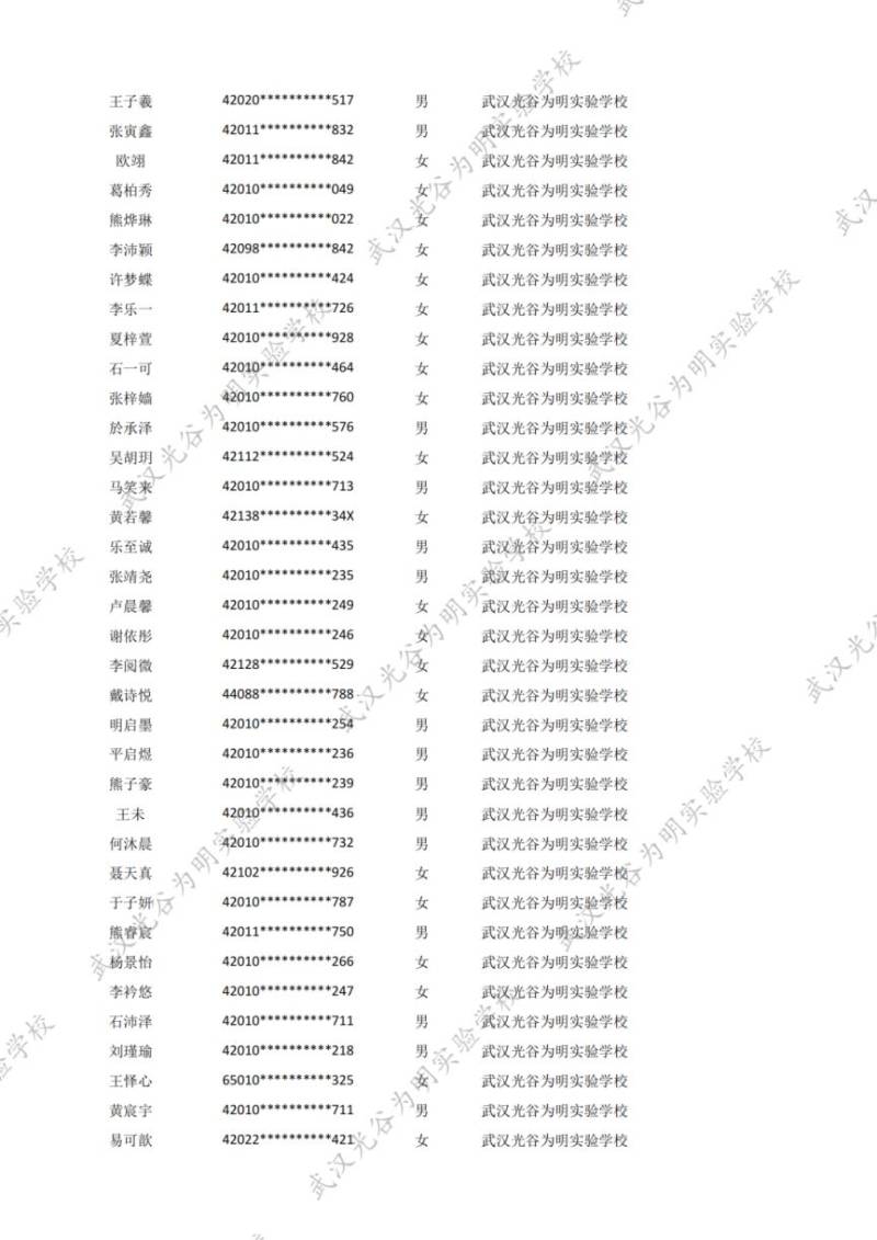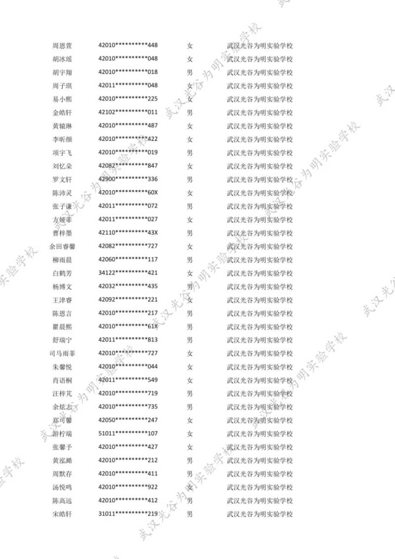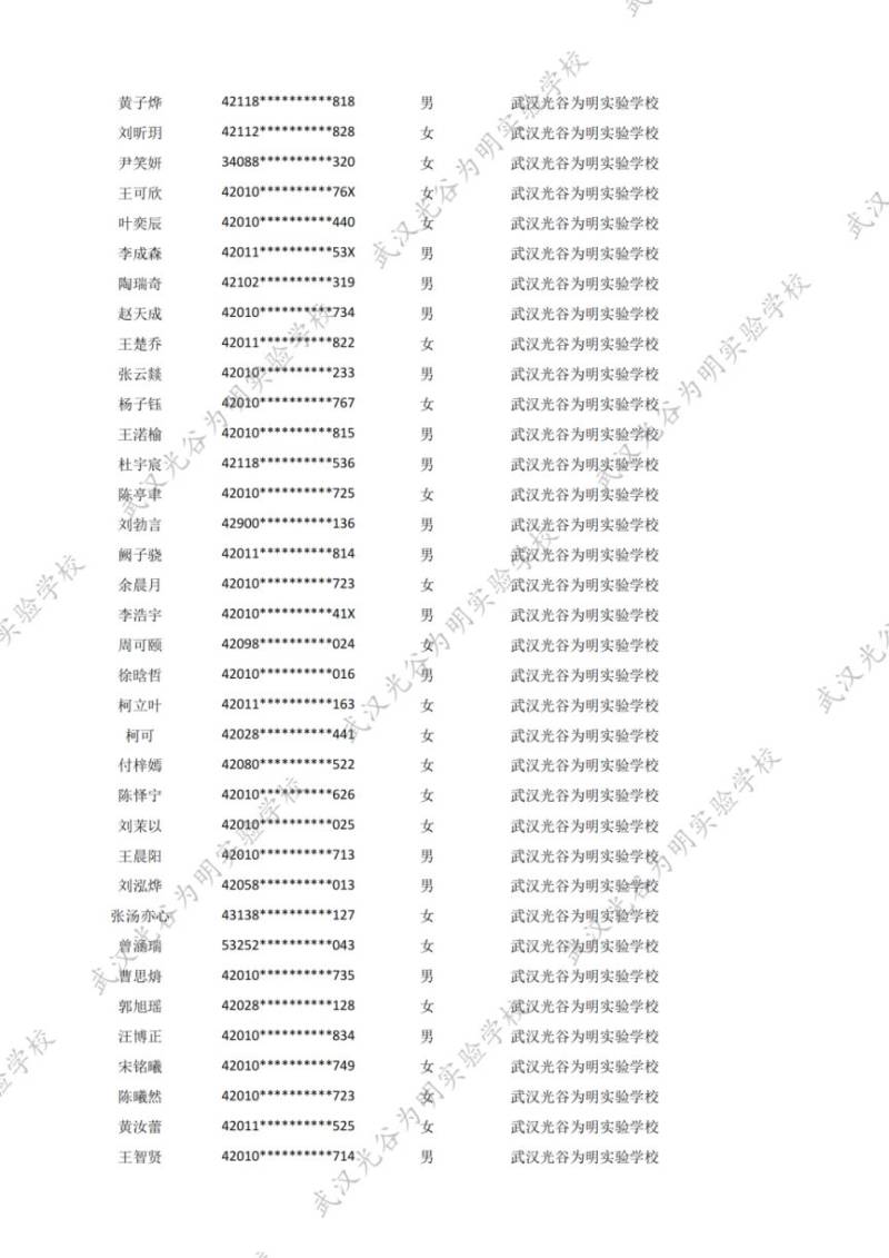 2025武汉光谷为明实验学校摇号录取名单(小学+初中)