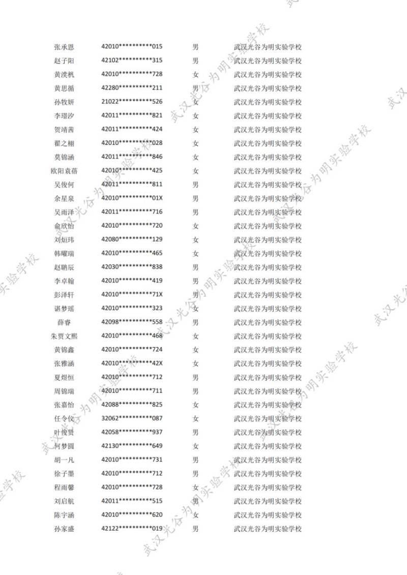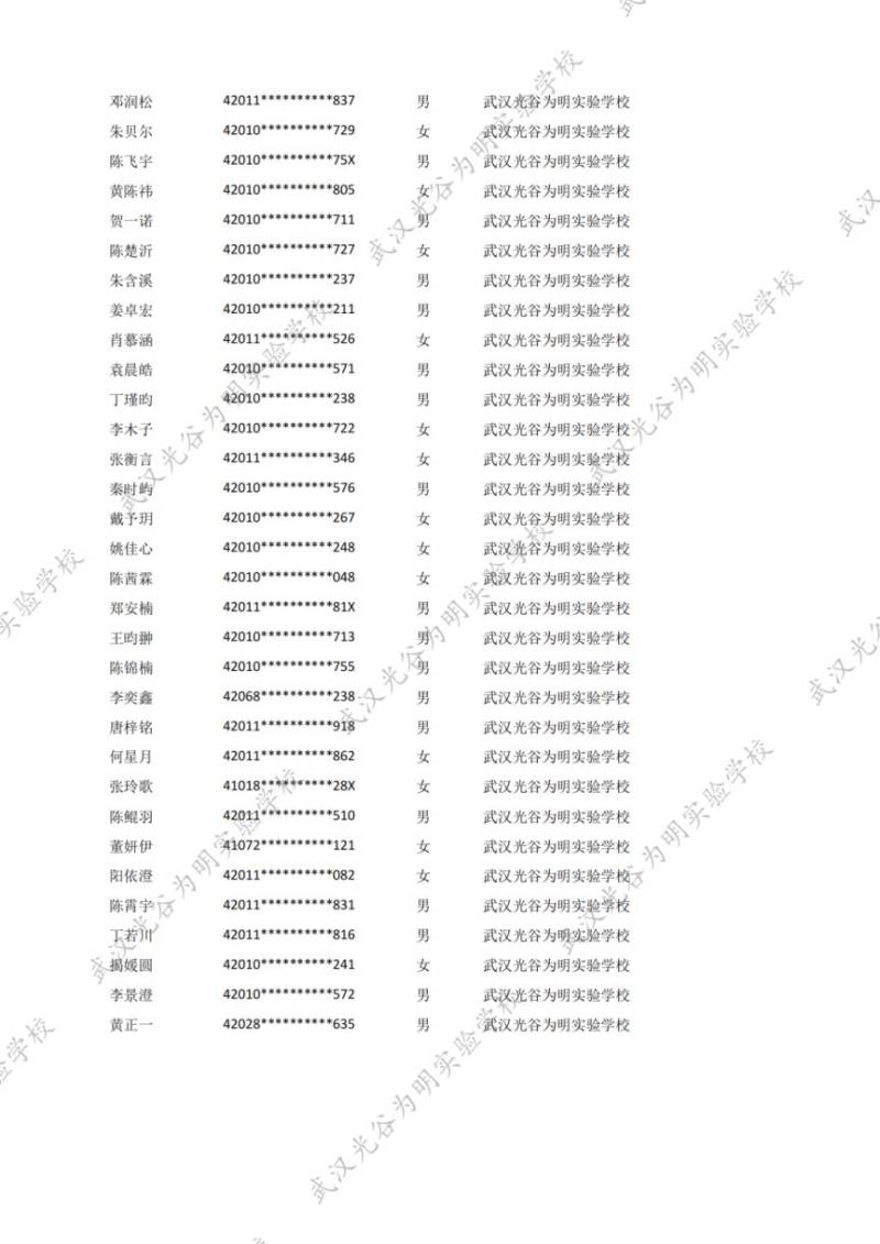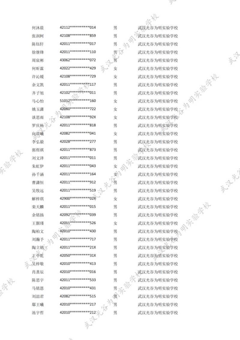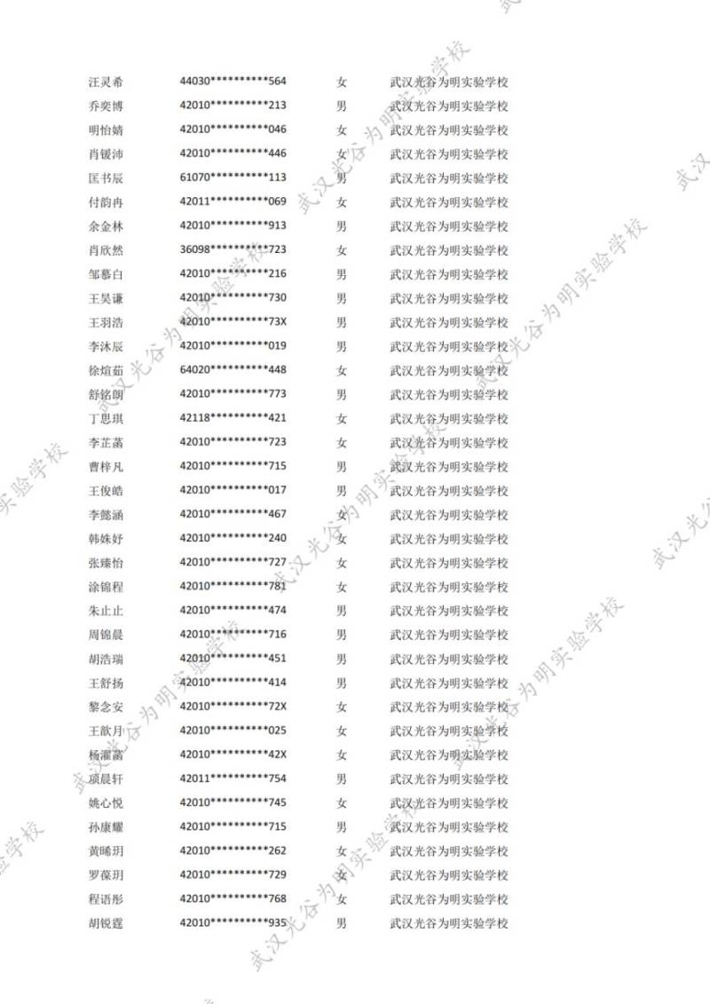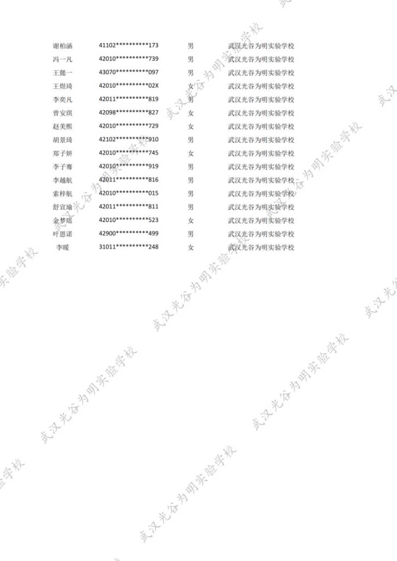 2025武汉光谷为明实验学校摇号录取名单(小学+初中)