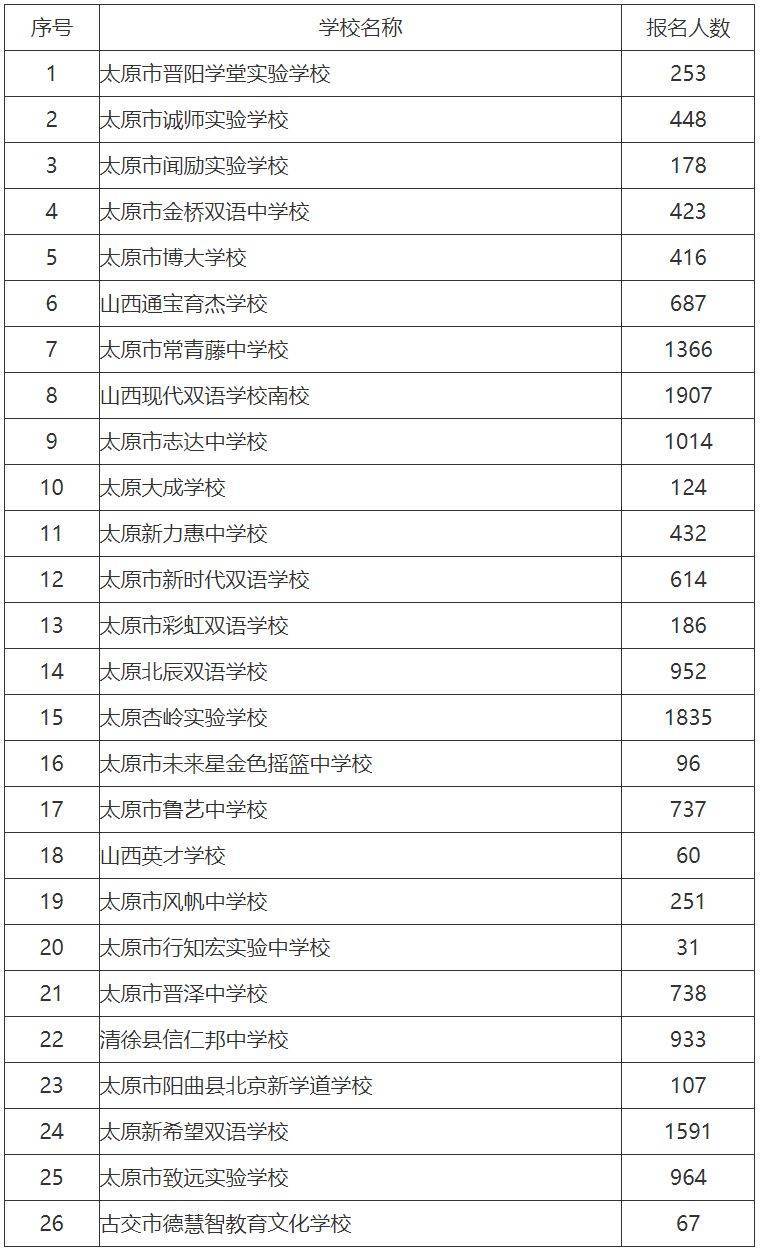 截止7月12日18:00,2024年太原市民办初中报名工作已全部结束,现对全市民办初中(含已转公的公参民学校)报名情况进行公布。