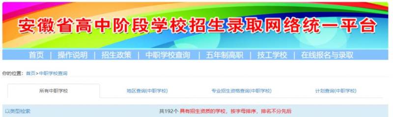 官方查询入口:安徽省高中学校招生录取网络统一平台
