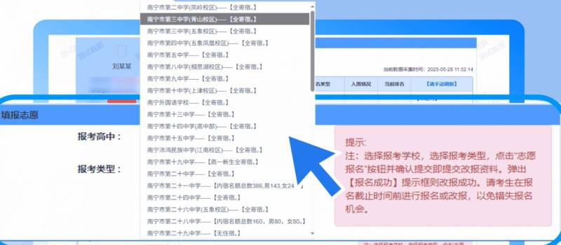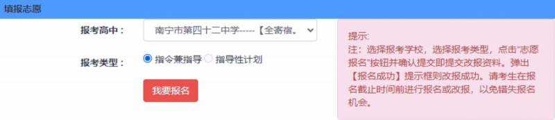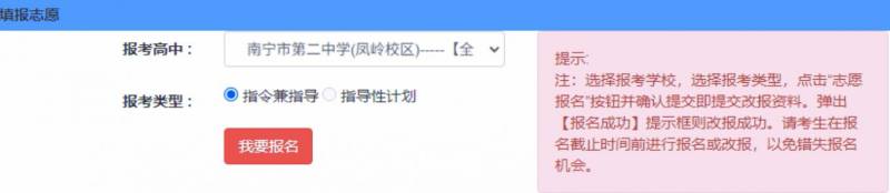 如需更改志愿,以改报二中为例,选择南宁二中(凤岭校区)并点击【我要报名】即可。