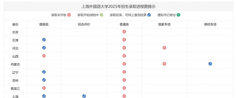 通知书查询:下滑即可看到上海外国语大学2025年招生录取进程图提示