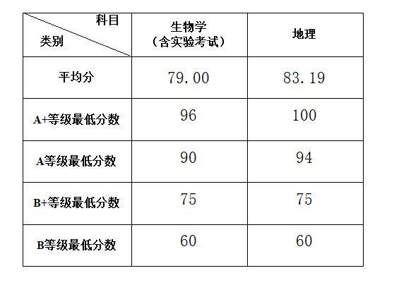 中山市2025年初中地理、生物学学业水平考试等级对应分数