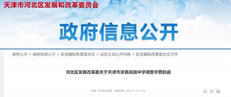 天津市河北区发展改革委关于天津市求真高级中学调整学费的函