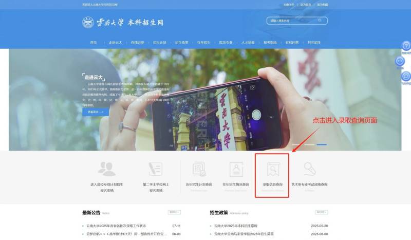 1.登录云南大学本科招生网(http://zsb.ynu.edu.cn),点击“录取信息查询”模块;