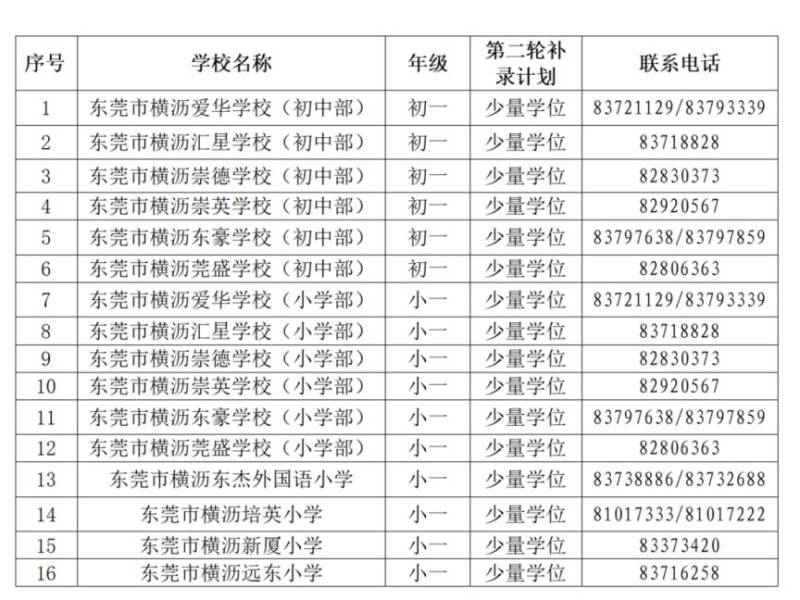 横沥镇2025年民办义务教育阶段学校第二轮补录工作
