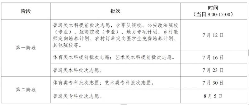 征求志愿填报时间: