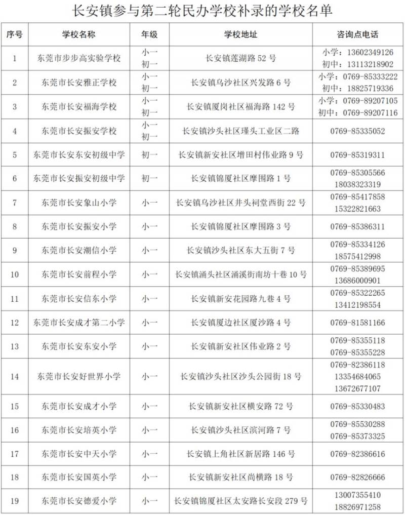 3.东莞市义务教育学位供需总体平衡,如在第二轮补录中仍申请不到任何民办学位的学生家长,可联系长安镇教育部门。