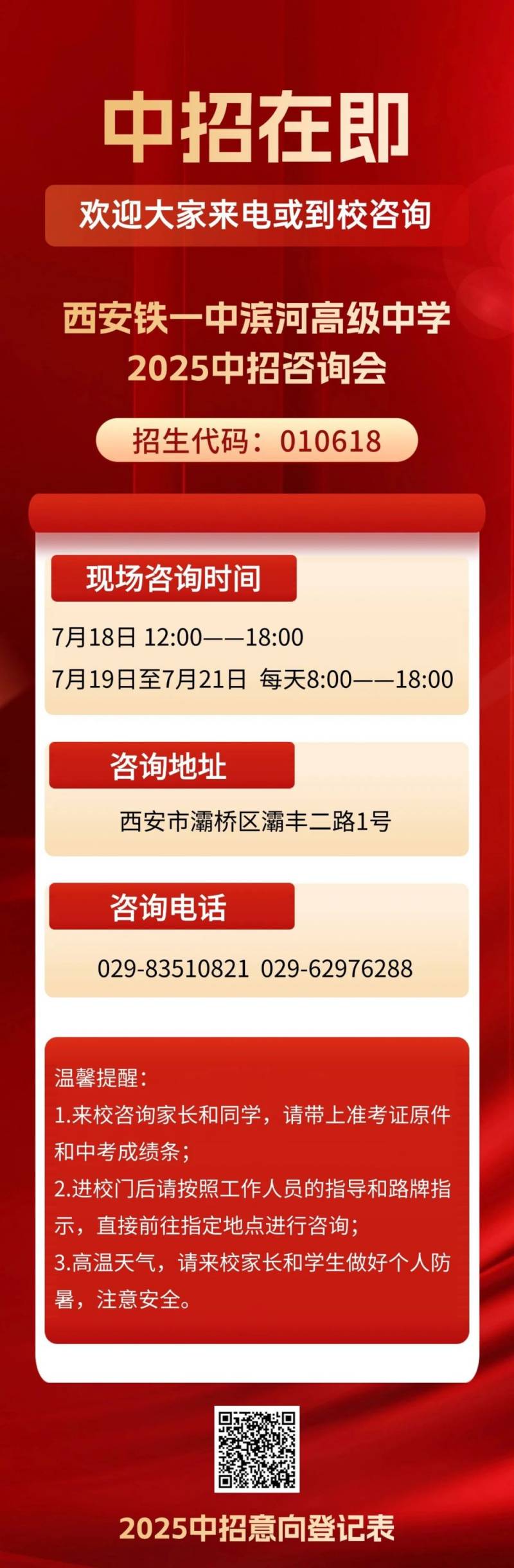 西安铁一中滨河高级中学2025年高中招生咨询会(时间+地点)