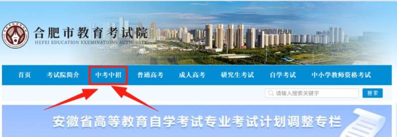 进入合肥招生考试网官网,点击【中考中招】模块。