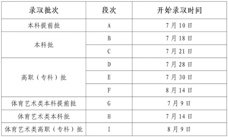 甘肃省2025年高考不区分本科一批二批,以下为本科批次各段录取时间: