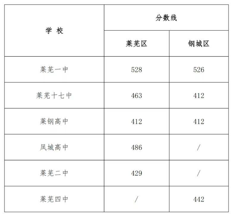 济南市莱芜区、钢城区2025年普通高中招生普通类录取分数线