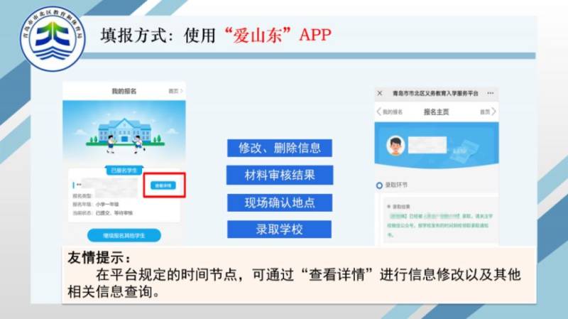 2025年青岛市北区小学信息采集、录取等在爱山东APP进行
