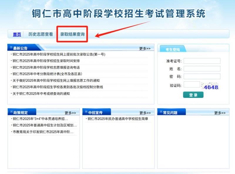 2025年铜仁中考录取查询系统入口官网