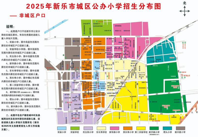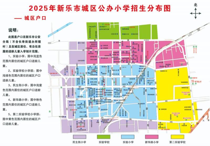 (2)新乐籍非城区户口在城区有自住房屋并居住的人员子女、外县市户籍在新乐城区有自住房屋并居住且办理居住证的进城务工人员随迁子女,按照附件中招生分布图中各学校标志色块范围报名。