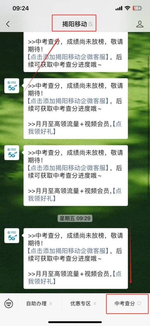 ②电信、移动两家运营商的微信公众号“中考成绩查询专栏”