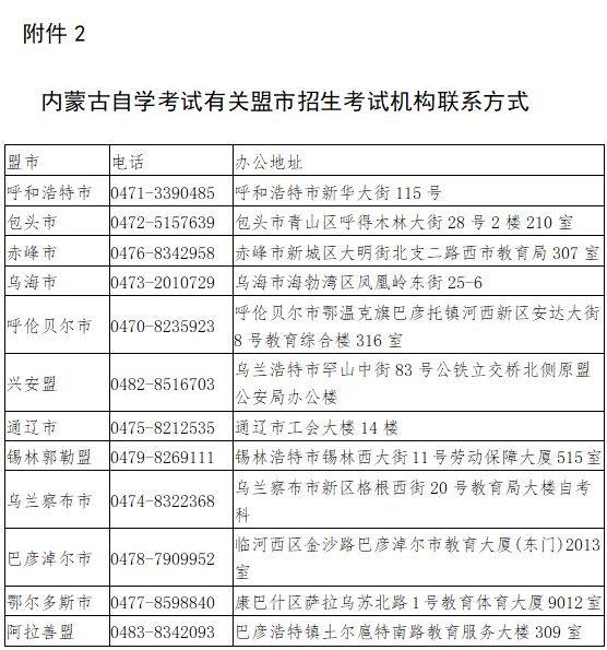 附件2:内蒙古自学考试有关盟市招生考试机构联系方式