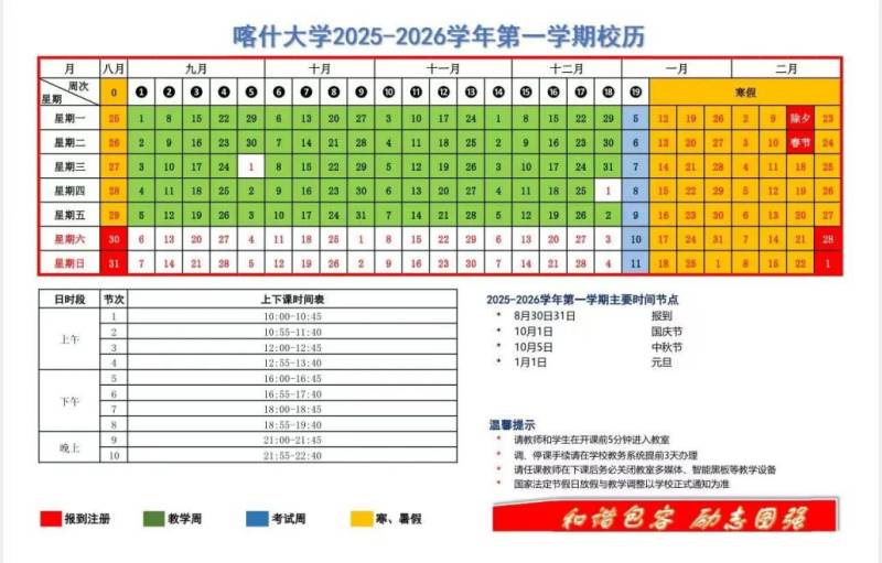学校最新校历以及作息时间表