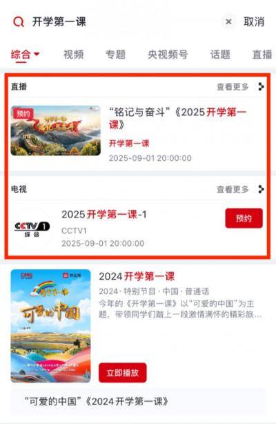 ps:打开上述App,搜索【开学第一课】或者【CCTV-1】观看直播。
