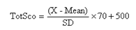 公式中TotSco表示总分,X表示每位考生常模转换前的原始总分,Mean表示常模均值,SD表示常模标准差。每次四、六级考试等值后的卷面分数都将参照此常模公式转换为报道分数。