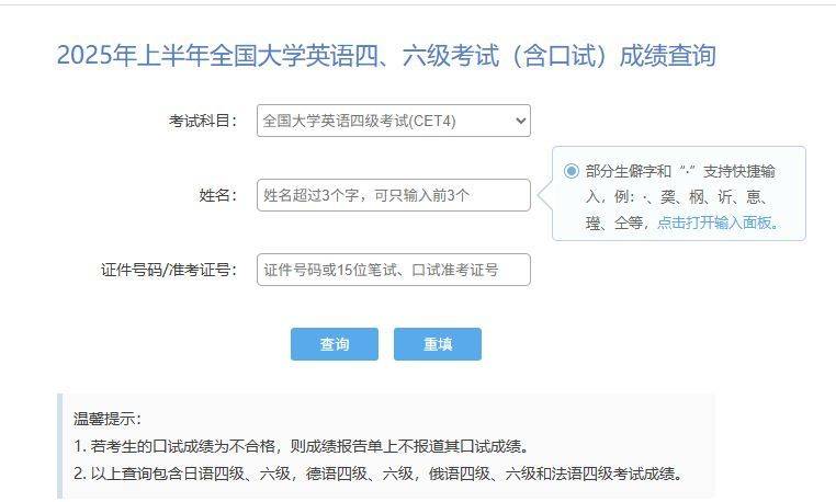 》》》推荐阅读:2025年上半年四六级考试成绩公布时间(附查询入口)