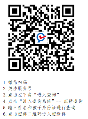 开学报到:家长根据步骤查询分班结果,由家长扫码加入班级群,届时班主任将发布开学报到的相关事宜